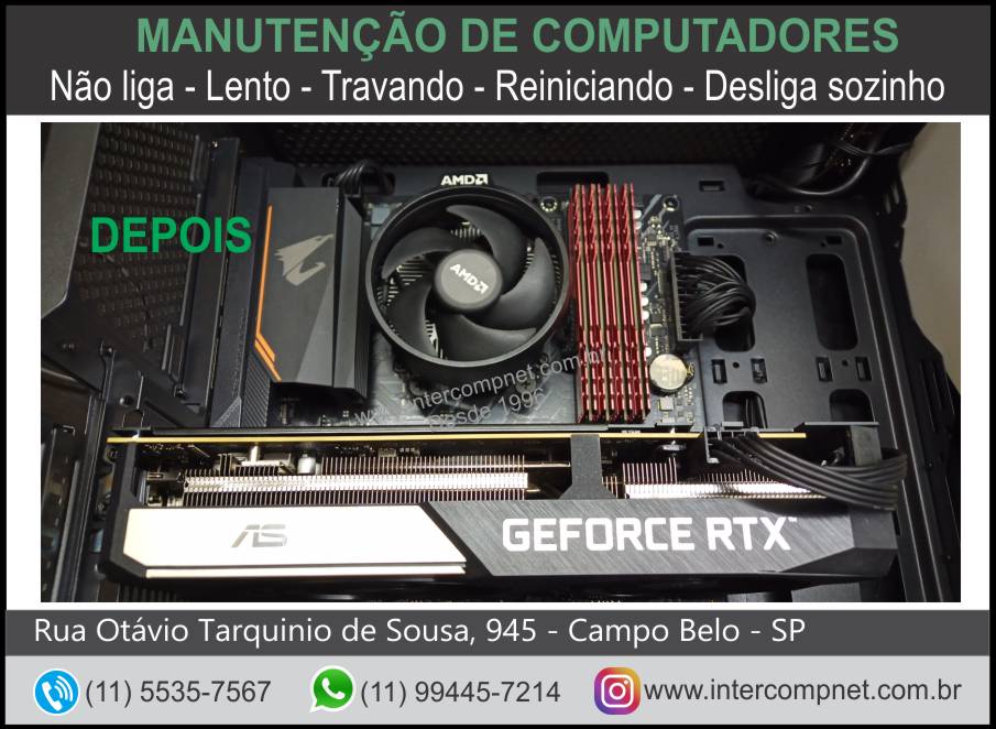 Somos uma assistência técnica especializada em manutenção, conserto, reparos, configuração, formatação e upgrade em computadores de várias marcas e modelos: pc, desktop, torre, workstation, estação gráfica, mini-pc, pdv, computador gamer, pc-gamer, all in one, tudo em um; trabalhamos somente com peças originais de primeira linha, solicite já seu orçamento!